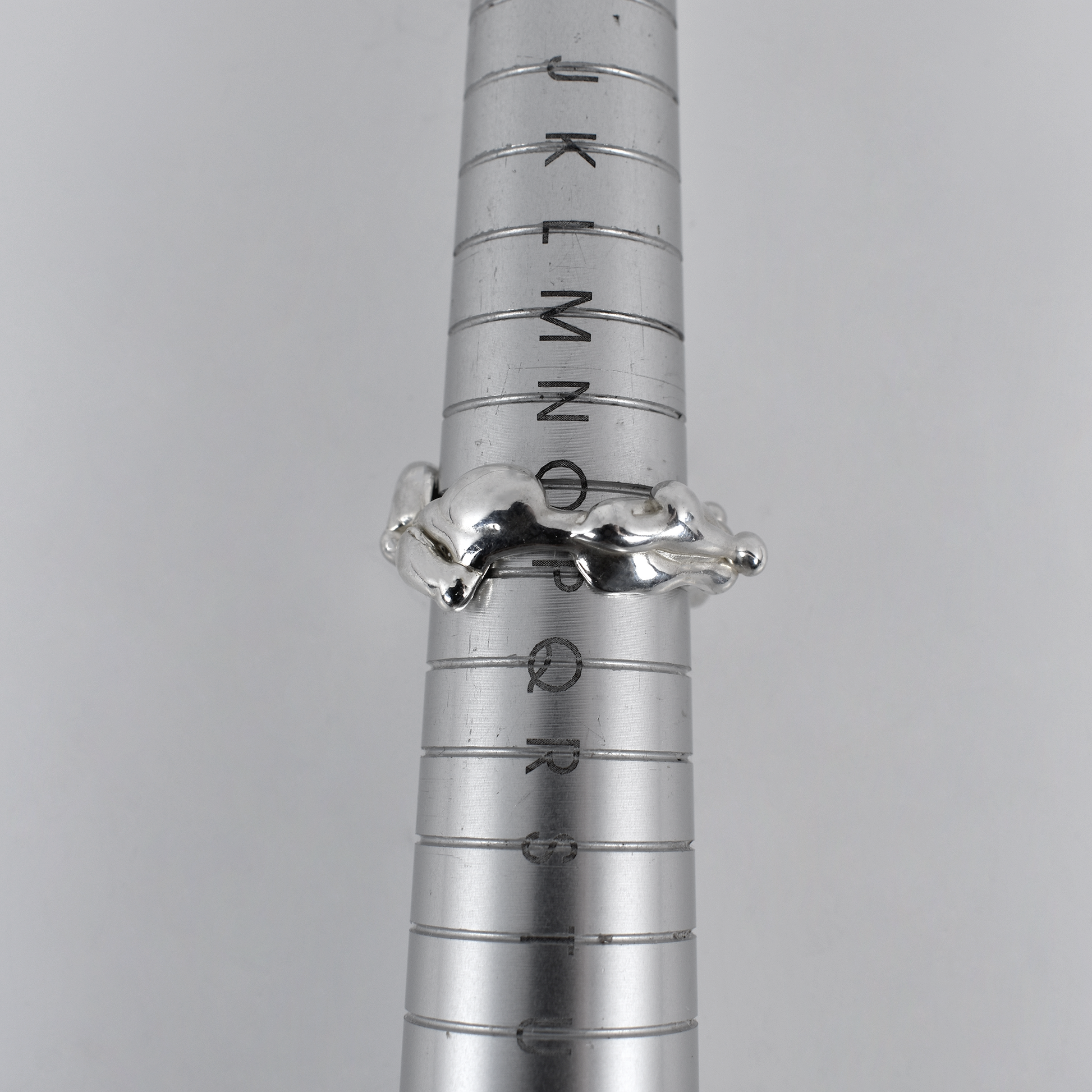 The Swash ring is a 1/1 design and comes in a size P. Given the unique nature of the ring, resizing is limited to +1 size bigger. Not sure what size you need? Visit our sizing page!
