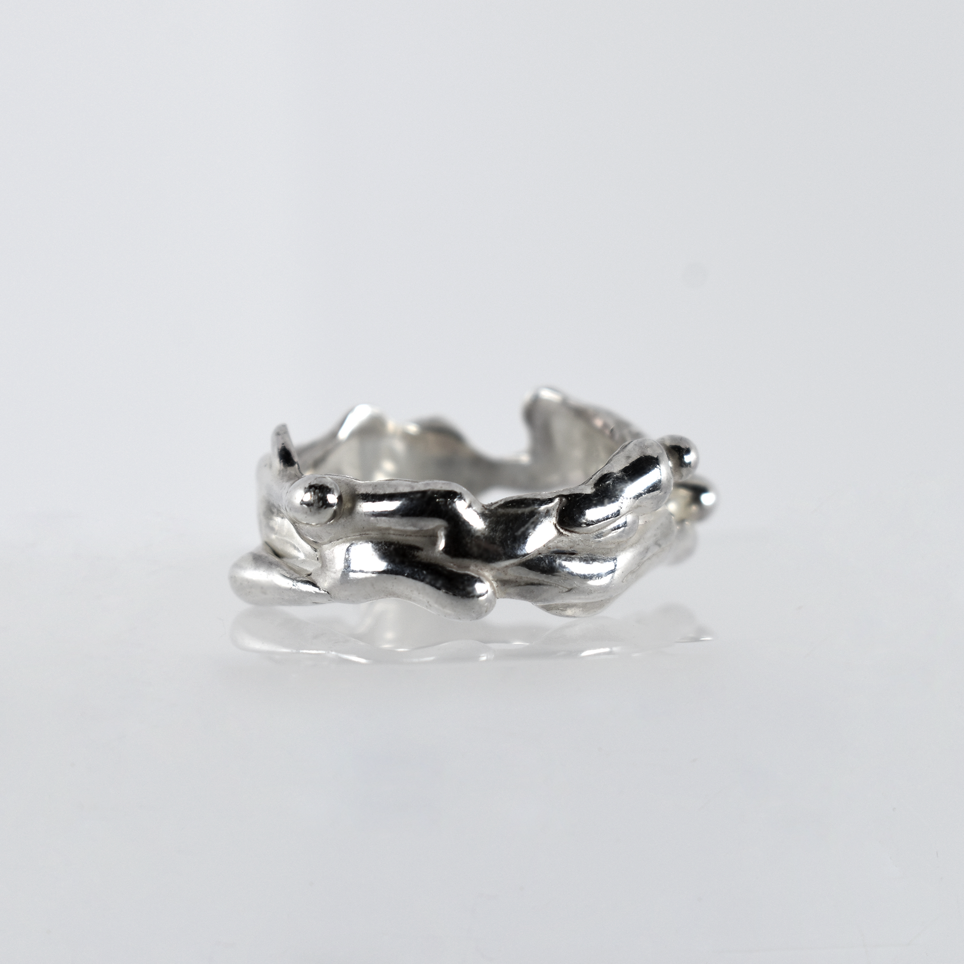 The Swoosh ring is a 1/1 design and comes in a size S. Given the unique nature of the ring, resizing is limited to +1 size bigger. Not sure what size you need? Visit our sizing page!